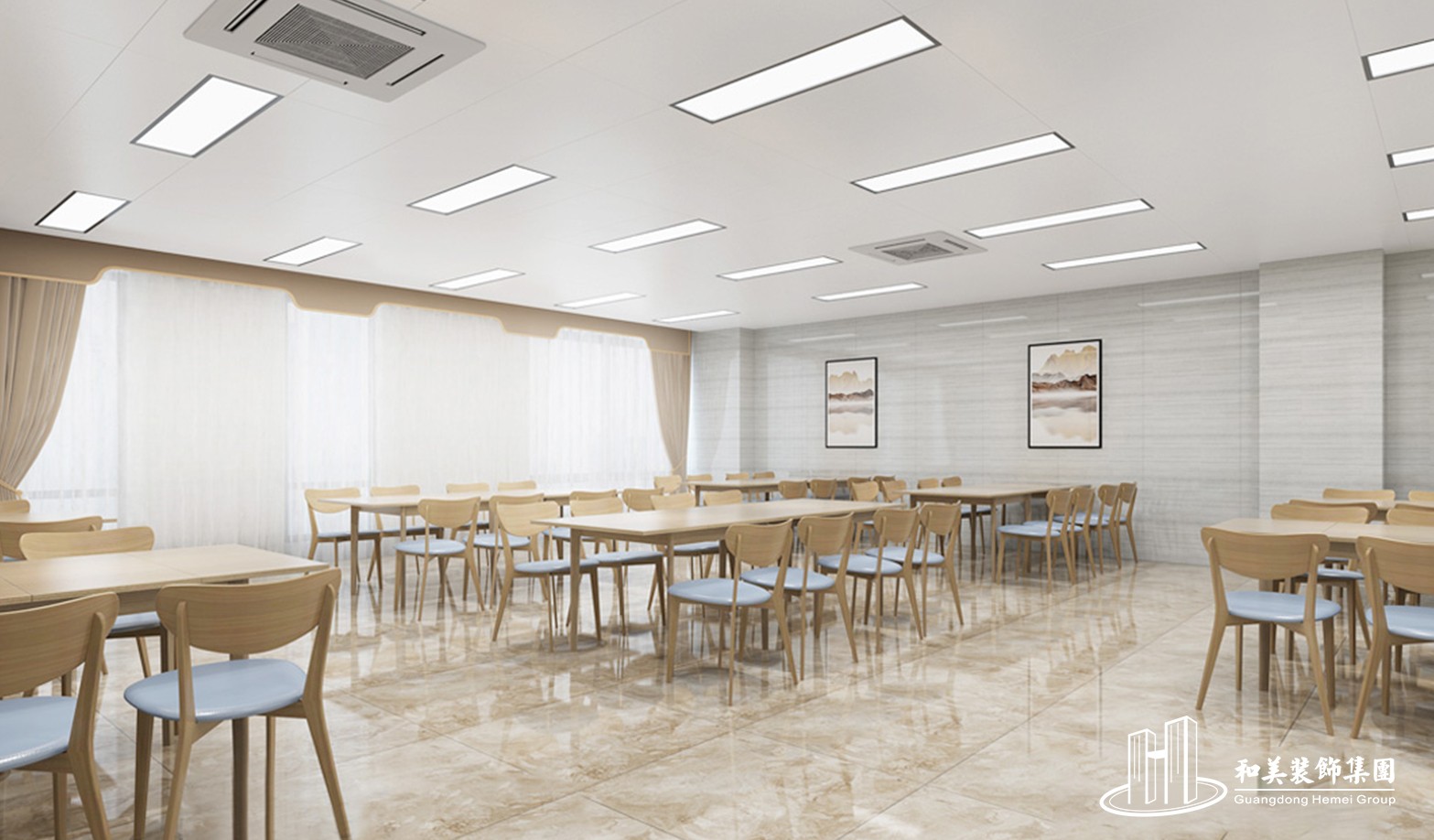 设计理念:办公楼的装饰工程主要以实用功能为首要点,该大楼涵盖了办公区、待客会所、住宿以及餐厅在内,功能应有尽有,而在设计风格上,追求简约的现代风。