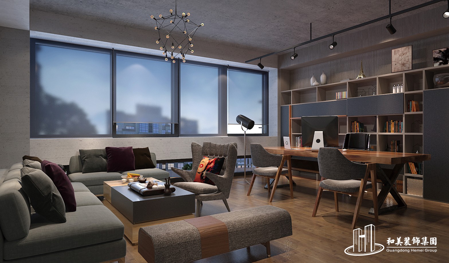 设计理念:本案行业定位——服装展示与办公。KS服装公司位于广州富力桃园大桥旁,广州啤酒厂的原厂址,和美设计师的设计手法主要表现在新工业与旧工业的办公室装修风格相互结合,