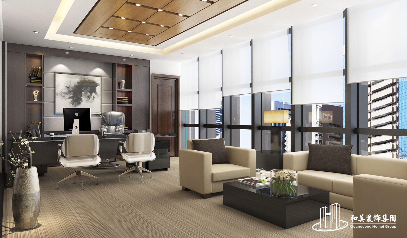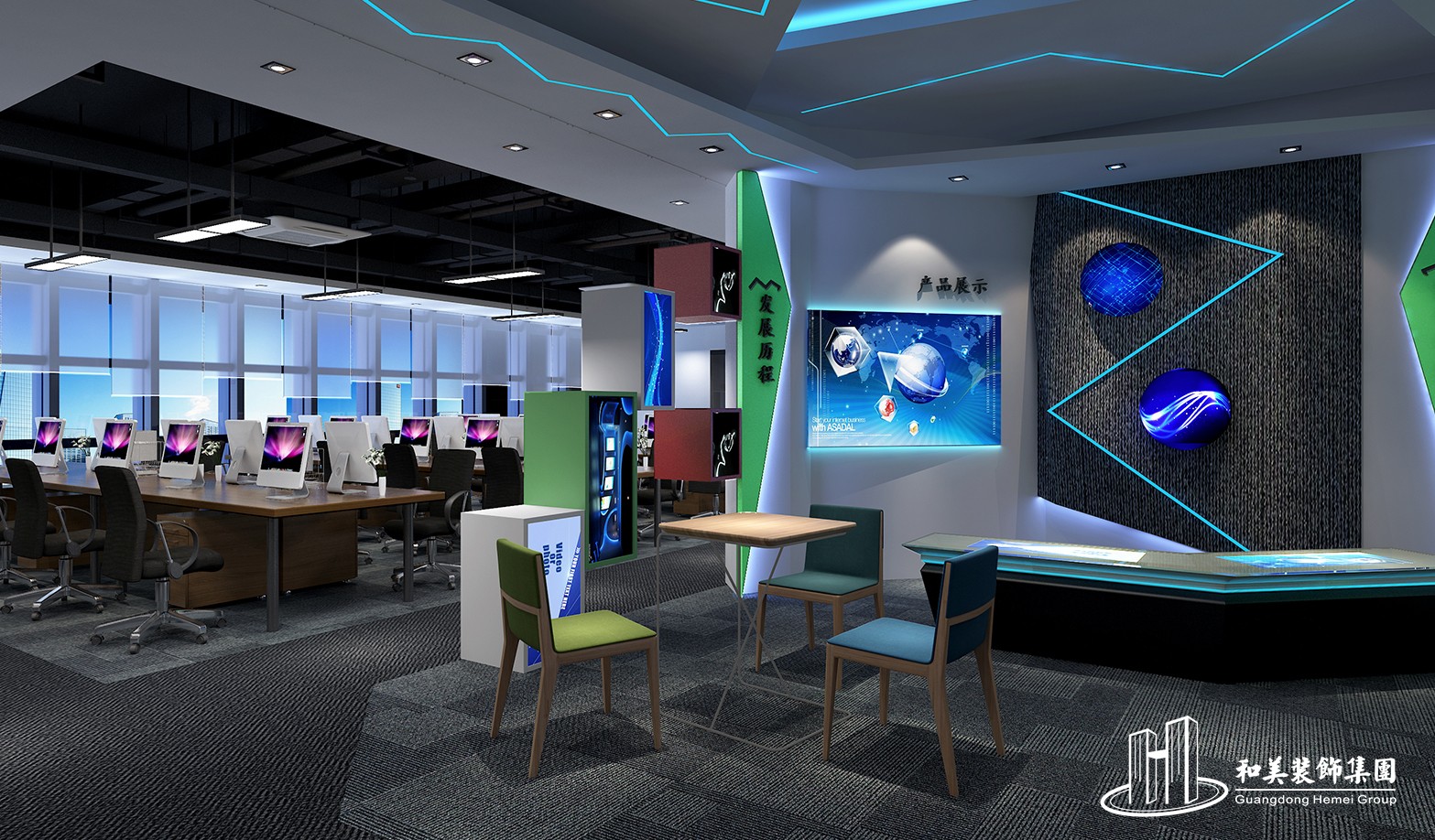 设计理念:本案设计注重体现三山科创中心“以科技为本”的经营理念与服务原则,展现现代化办公室的别具一格。