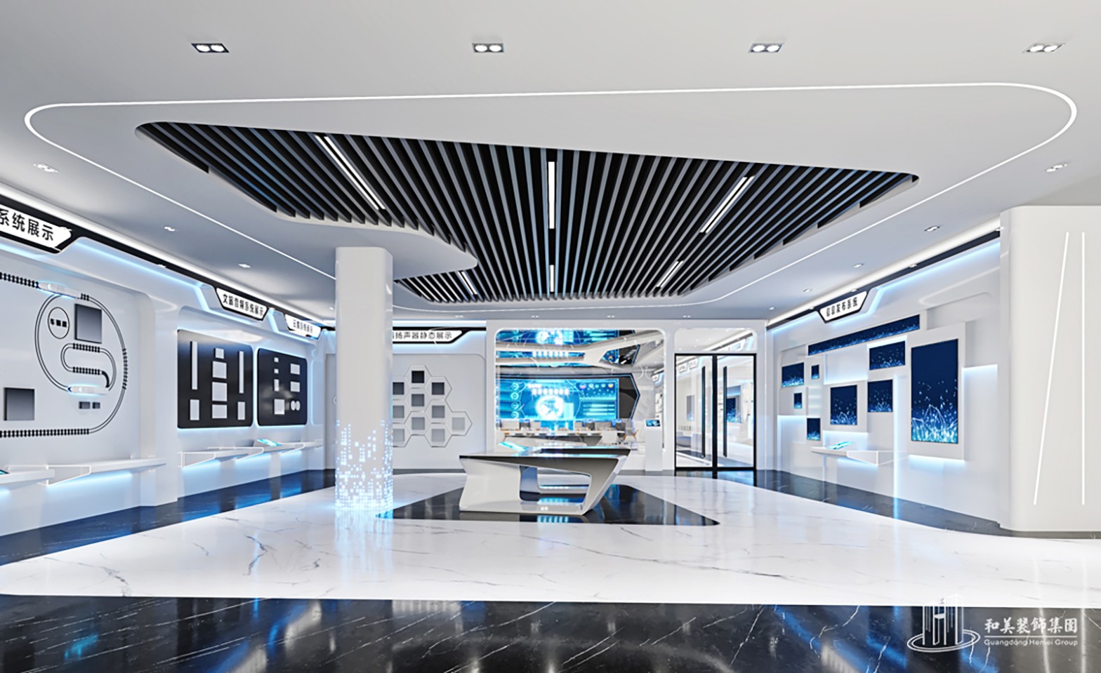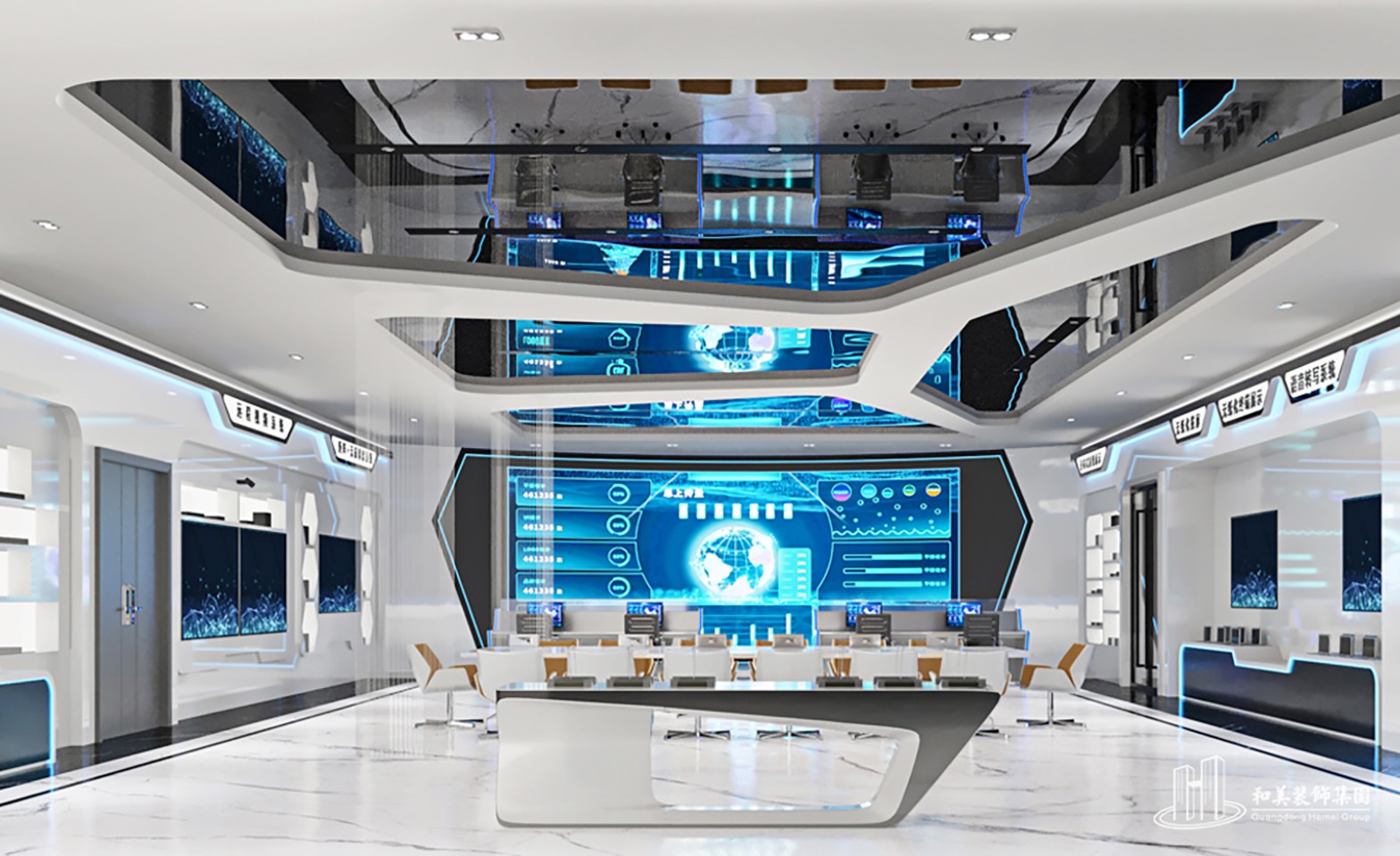 设计理念:本案的设计是现代风格,科技感十足,结合当前最新的室内空间表现理念和多媒体技术,力图打造一个富有视觉冲击力、动静形式相结合和充满文化内涵的现代化展厅。