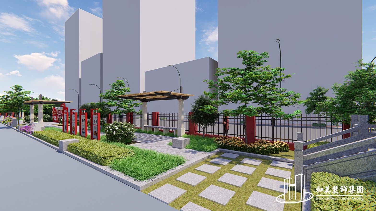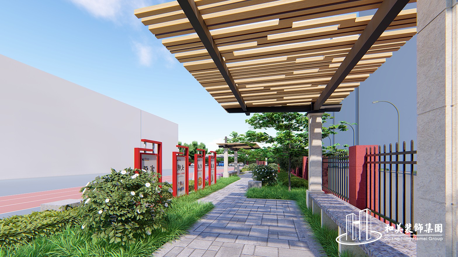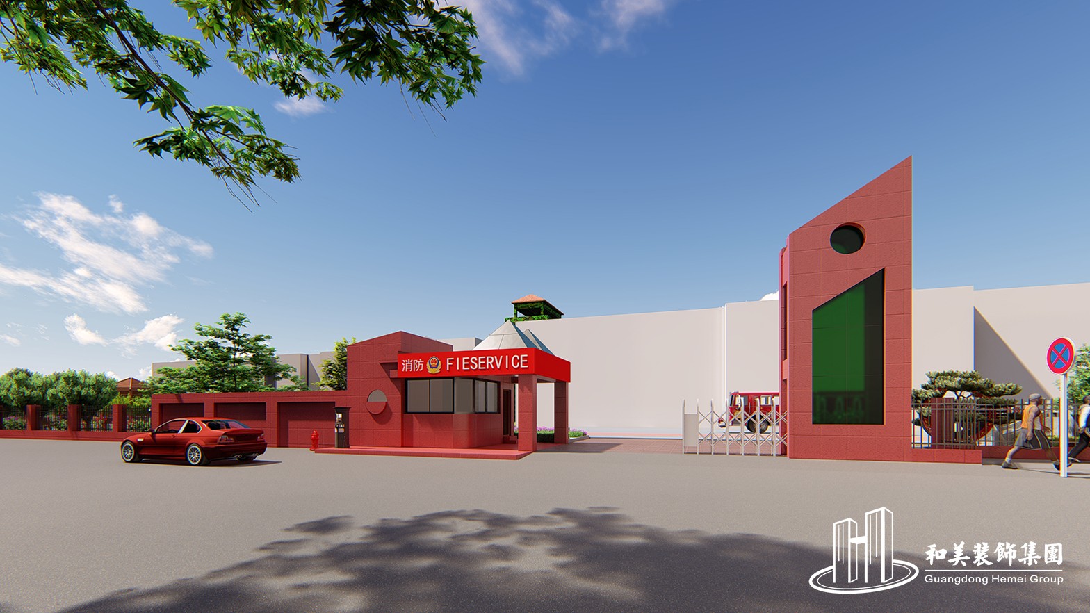 设计理念:本案例是和美承接的消防大队门头与园区园林景观设计,园区内的设计以大气为主,彰显了消防大队的正义之感。
