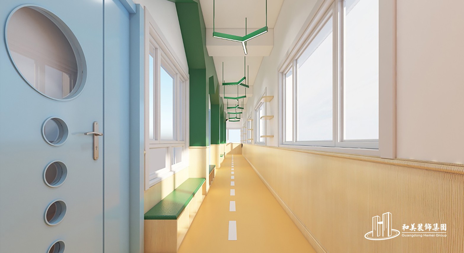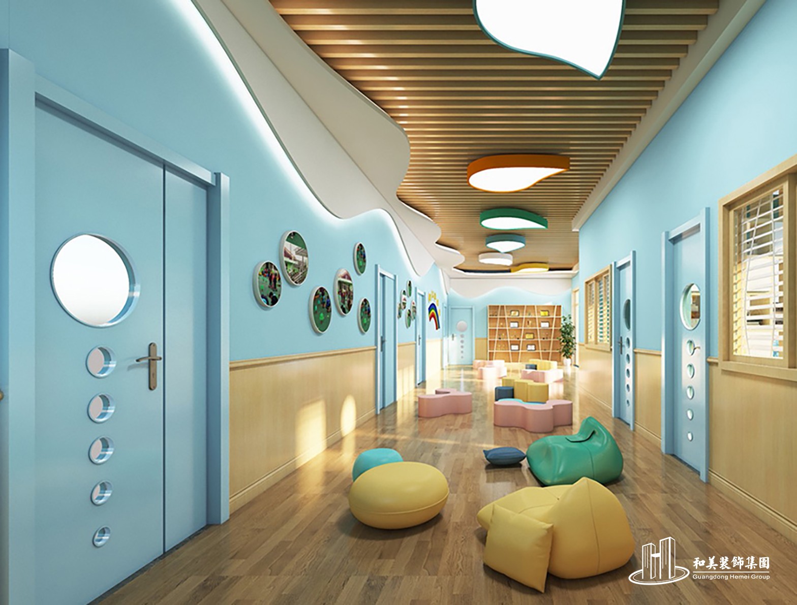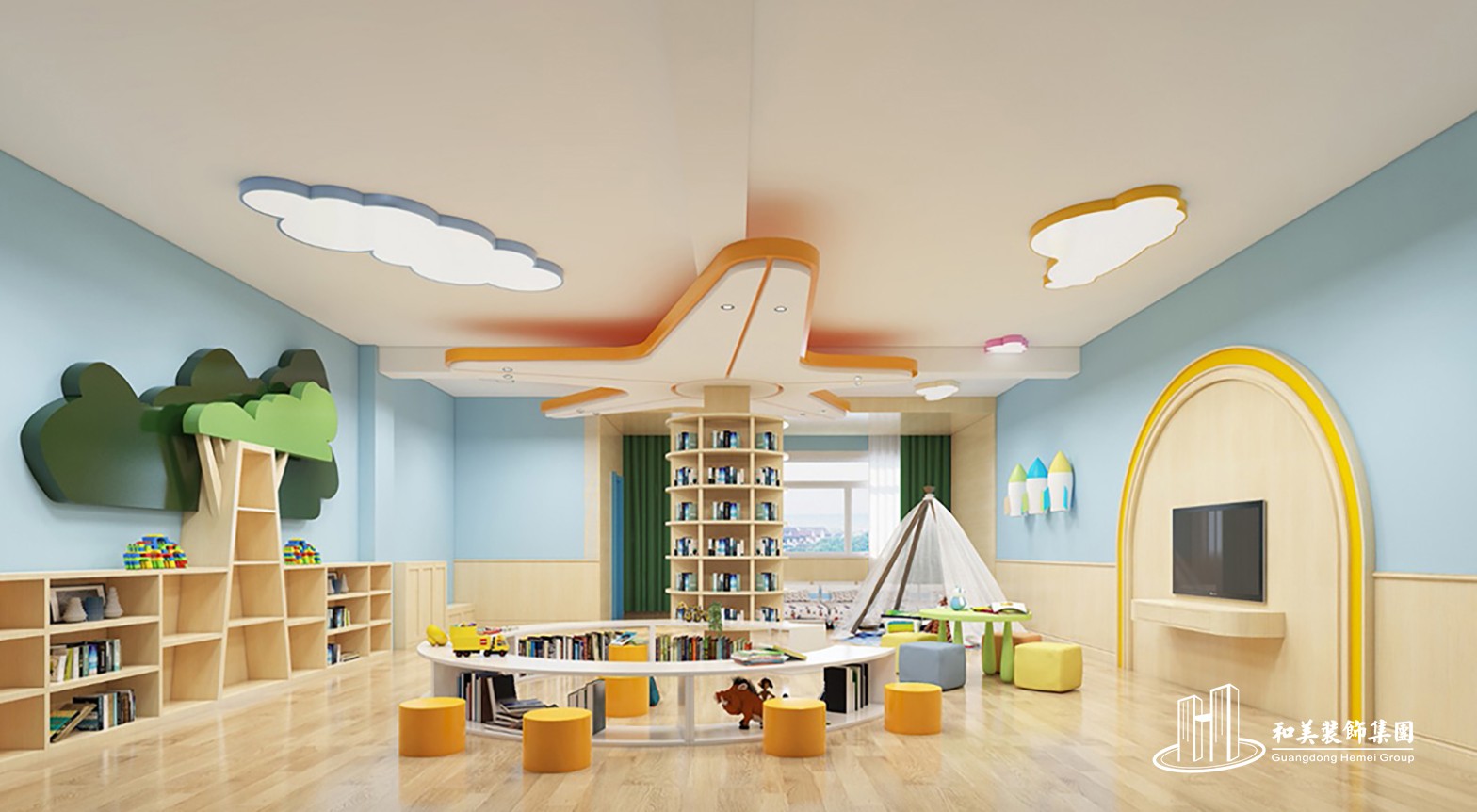 设计理念:孩子们的世界是色彩斑斓的,本案例就是根据孩子们的世界来设计的,一抹黄、一抹蓝、一抹绿等等,都代表了孩子们的童真,大树、飞机、鱼、火箭、云朵……都展现了孩子们的热爱。