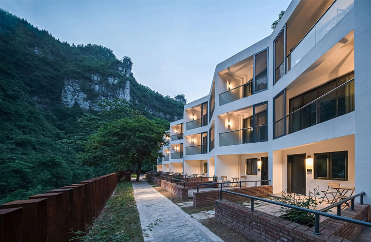 --夏天,很多人都会选择去山水之地避暑,带上亲人朋友到峡谷山庄游玩上一周,体验当地风俗习惯,放慢脚步,回归自然,重新出发。今天小美就和大家分享湖北宜昌的酒店设计分享案例,是由牢溪峡谷中的一家废弃工厂改造成为度假酒店。