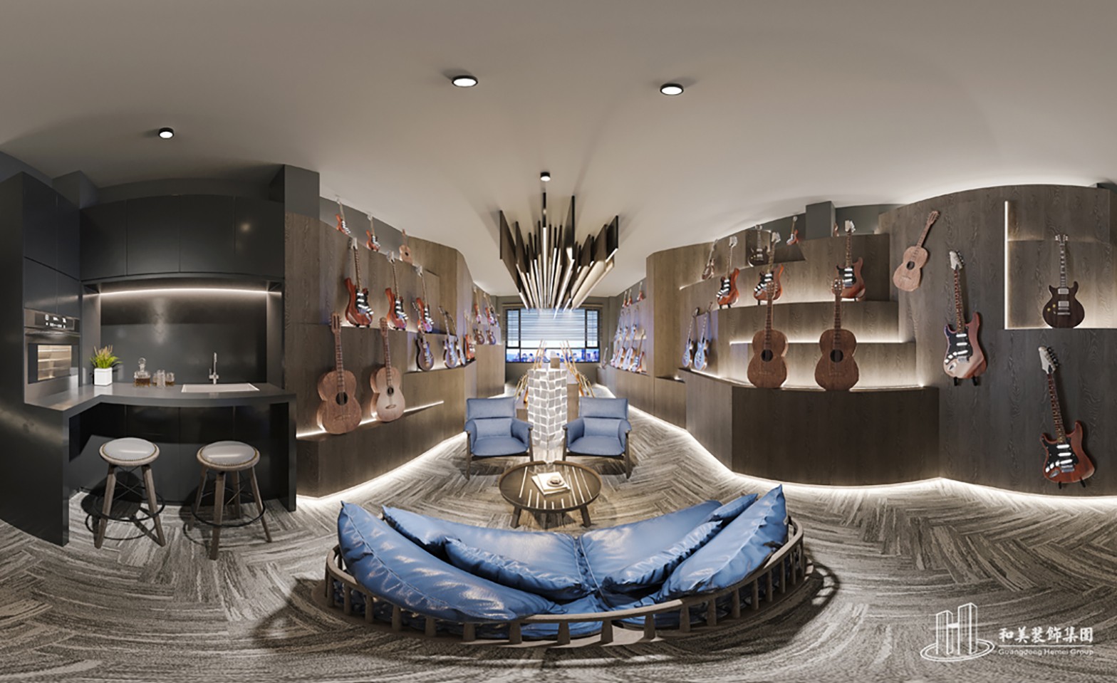 设计理念:在本案空间设计中,我们力图打造一个富有艺术气息,明快简洁的空间。整体空间我们选用舒适的木制色调以及亲和力较好的材料,并搭配一些突出品牌形象感的色系,运用当下较为流行的装修材料来表达,着力体现其温馨的音乐表演空间。