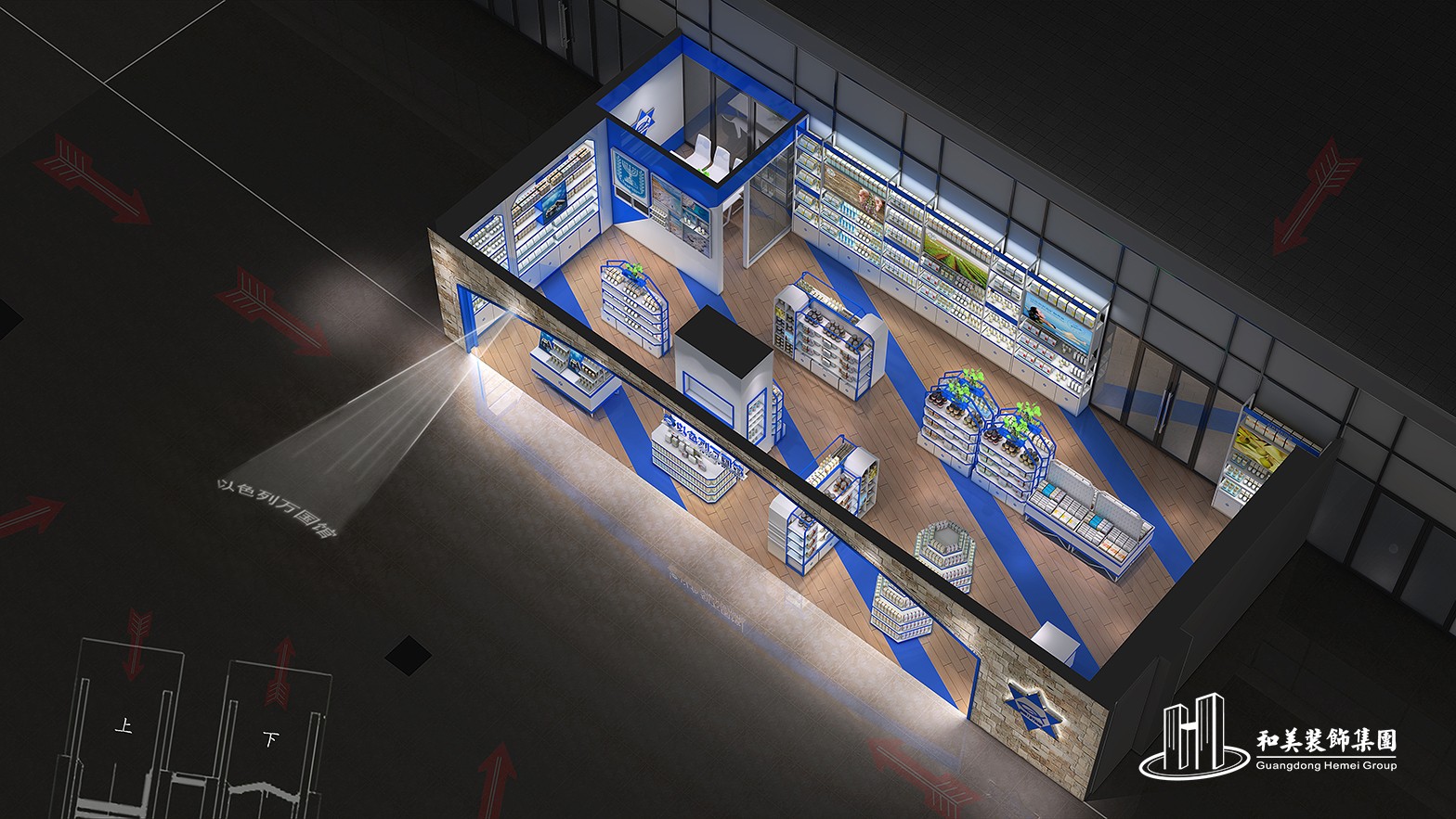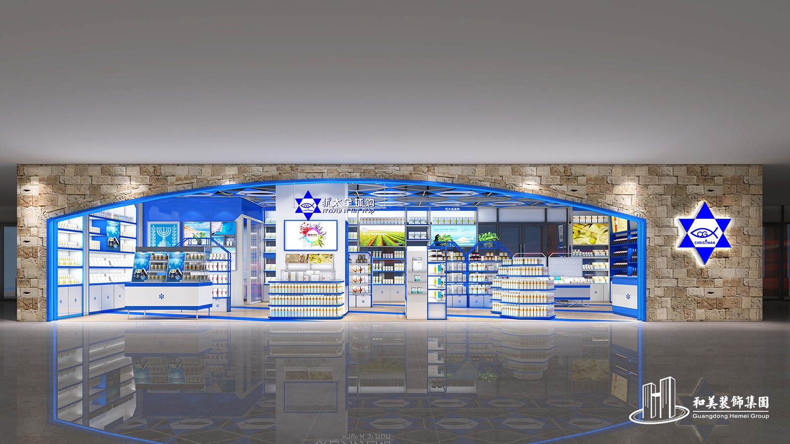 设计理念:本案例业主是主打以色列进口零售产品,并且做连锁销售,由和美负责店铺设计。