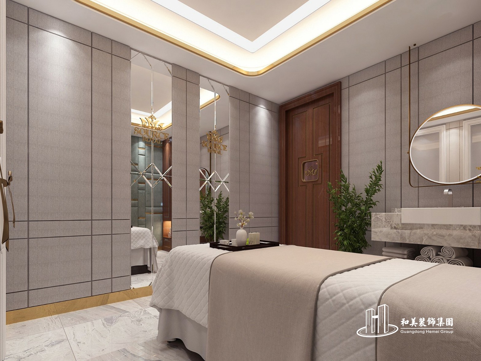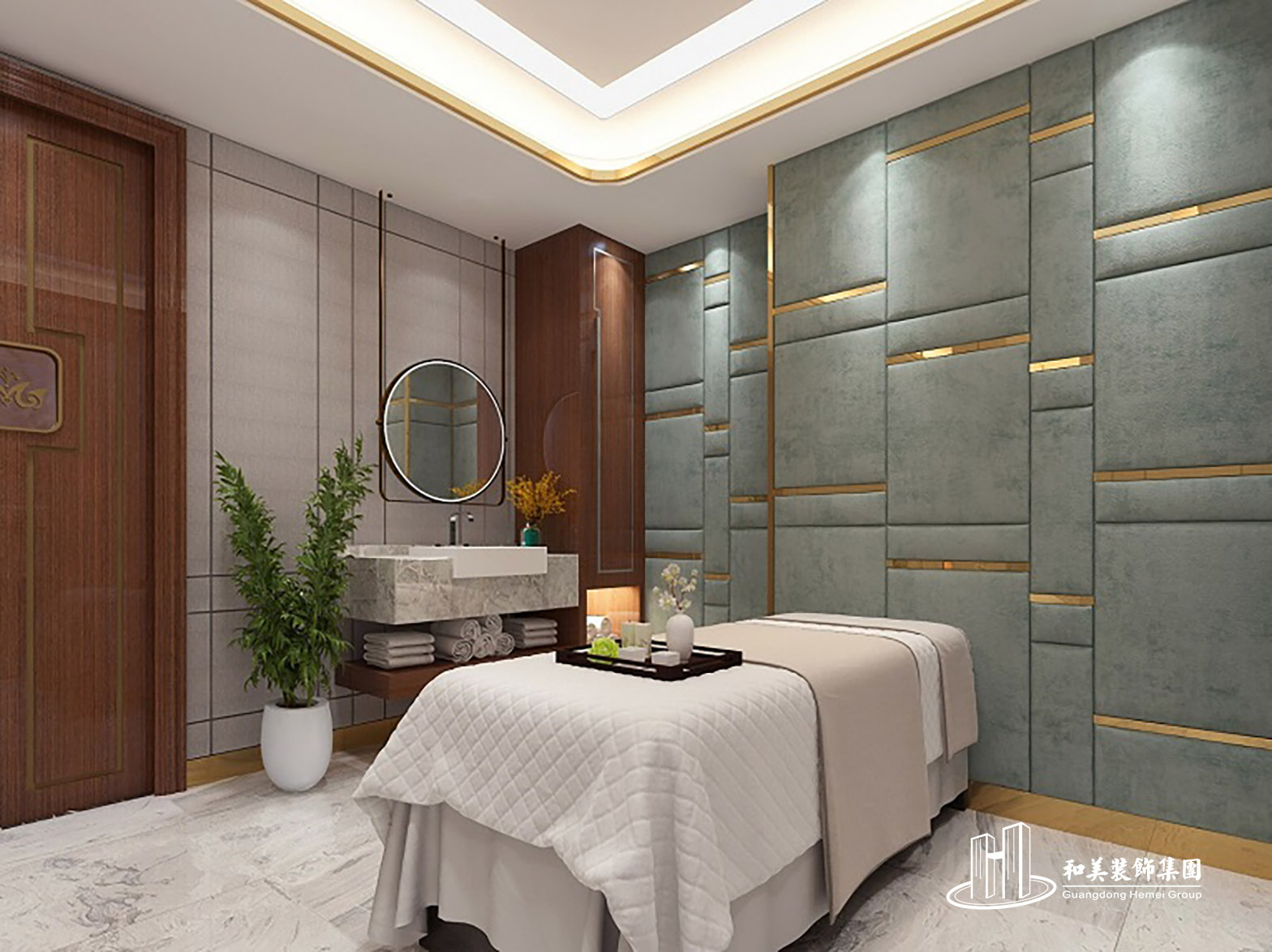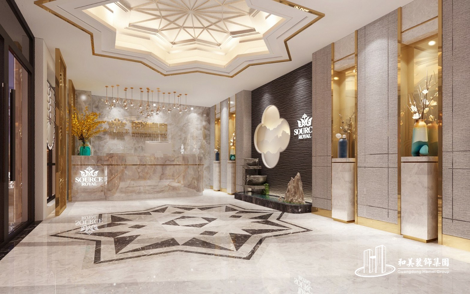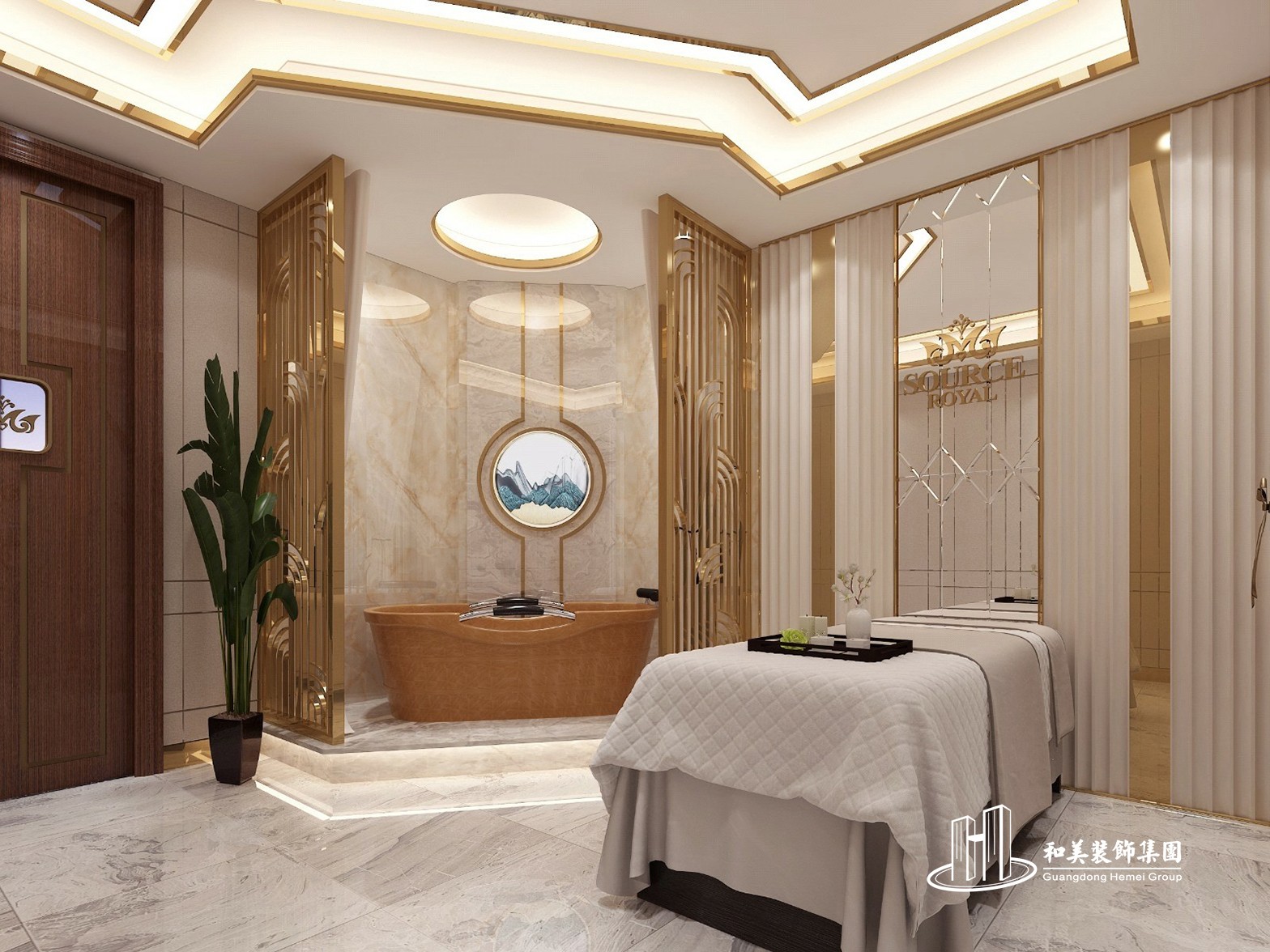 设计理念:本案例是美容院设计工程项目,全院装修风格以欧式和中式为主,以金色为主色调,无论在墙体装饰还是在天花装饰,金色的点缀让我们感受到雍容华贵之气质。